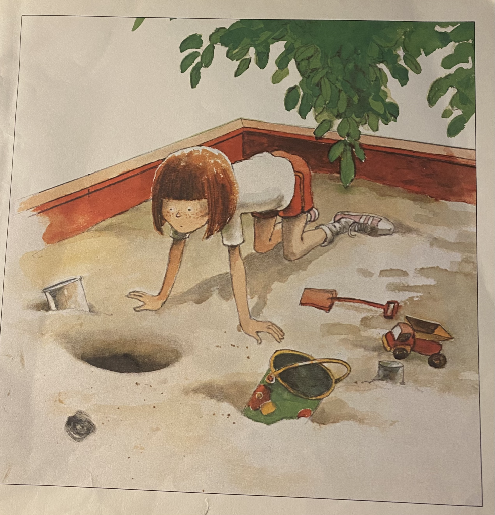 Il est évident que ce trou dans le sol symbolise le canal de naissance de la pré-adolescente. Une jeune adolescente qui donne naissance alors qu’elle-même est encore à moitié une enfant. Dans une perspective pro-choix, ce bébé trouvé par hasard dans un trou incarne l’enfant non-désiré par la mère qui le rejette parce qu’elle n’est pas prête à l’accueillir.
