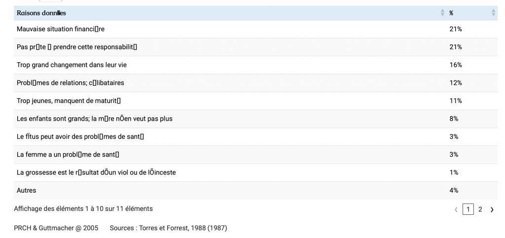 Une étude américaine très citée datant de 1988 liste les principales raisons pour lesquelles les femmes décident de choisir l’avortement. Cette étude est le résultat d’un sondage présenté à environ 2000 femmes. Dans 90% des cas, les femmes choisissent l’avortement pour des raisons qui, implicitement, sont suscitées par une absence totale d’attachement pour l’enfant comme si elles avaient été éduquées à ne pas aimer leurs propres enfants, comme si le lien d’attachement biologique avait complètement disparu pour des raisons obscures. Dans tous les cas de figure, l’amour que la mère éprouve pour son enfant est moins important que la question de l’argent, que sa situation maritale, que son parcours professionnel, que la question de sa maturité au moment où elle reçoit la vie.